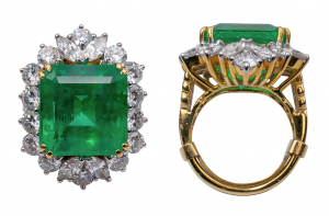 The c.1990s Southeast Asian emerald and diamond dress ring has a guide of £20,000-30,000.