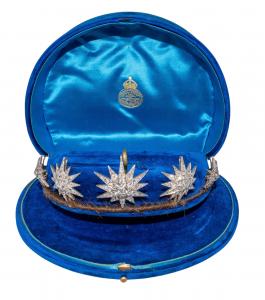 The c.1870 tiara in its original box, which has an estimate of £25,000-30,000.